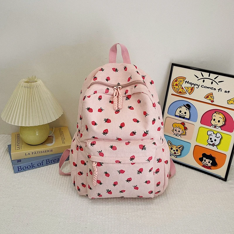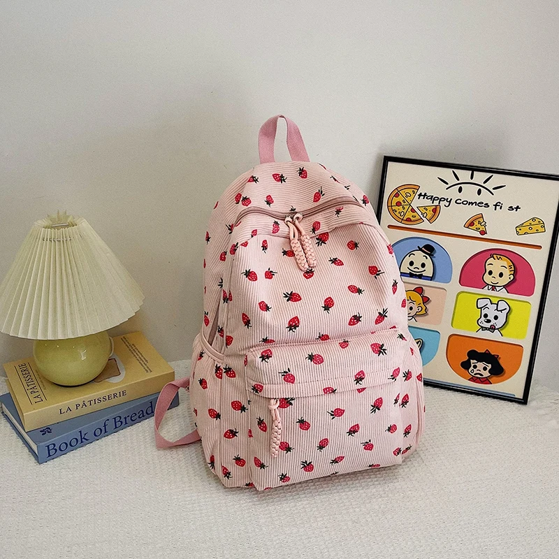 Three-Piece Corduroy Kawaii Backpack Set With Lunch Bag & Pencil Case Laptop Backpack Large Capacity Kid School Outdoor Backpack