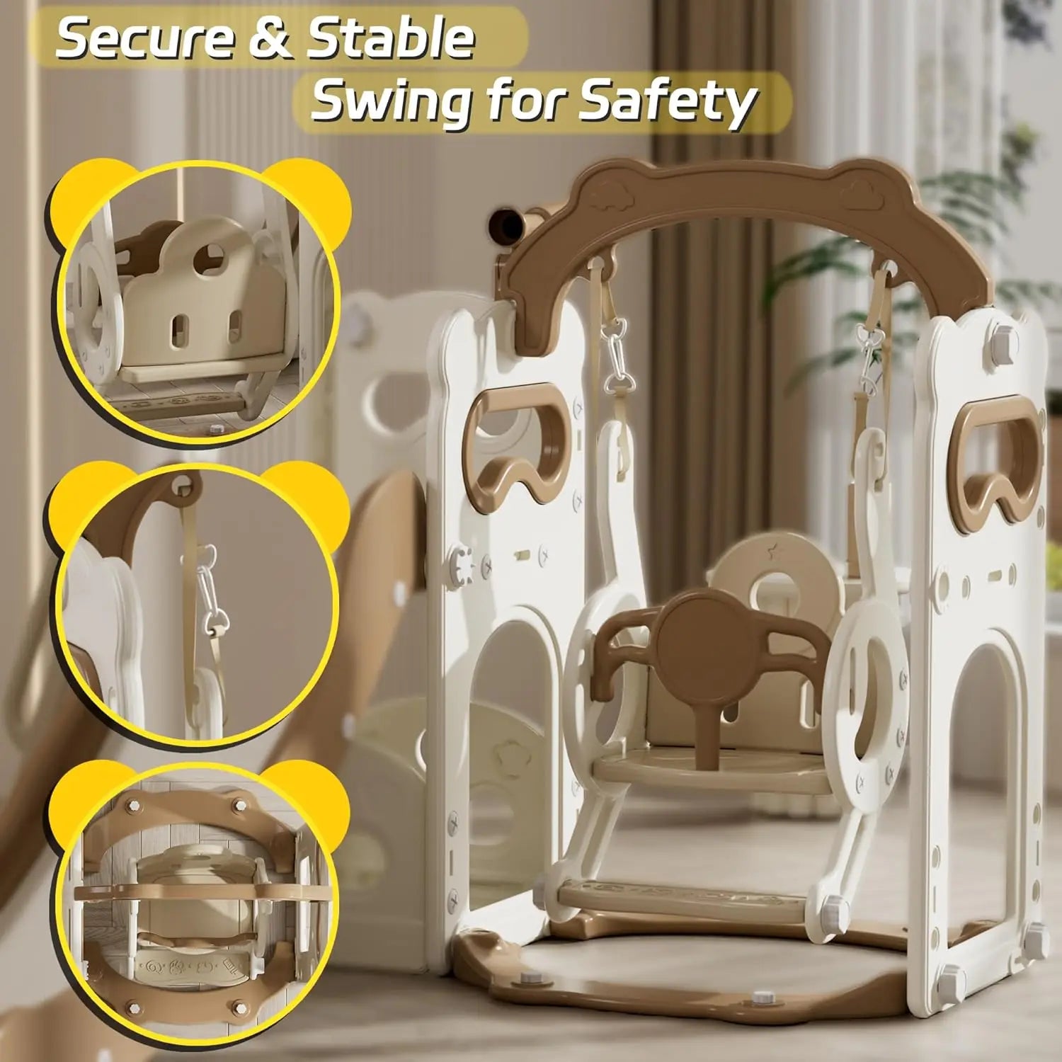 Toddler Slide and Swing Set for Toddlers Age 3-5 Baby Kids Slides with Basketball Hoop Telescope Outdoor Indoor Slide Stair Play